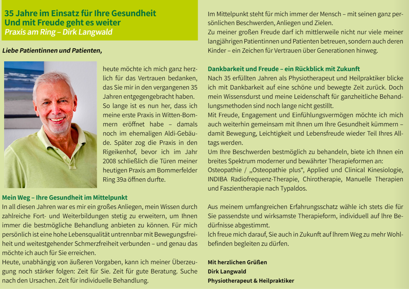 ▼ Witten transparent: "25 Jahre Praxis Dirk Langwald in Bommern"